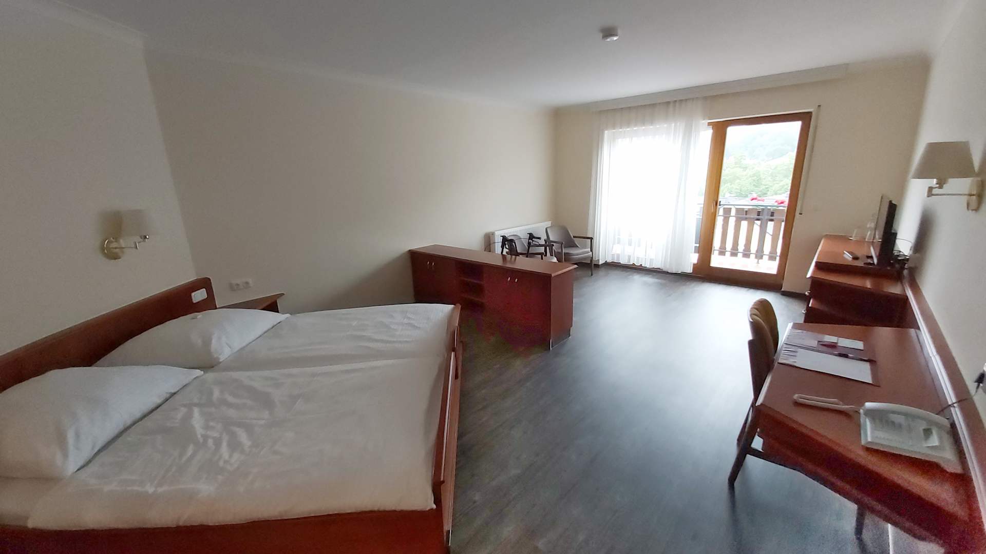 ZimmerZi. 45 auf der 4. Etage. Machte auf mich einen kalten / ungemütlichen Eindruck. TV und leere Minibar vorhanden.