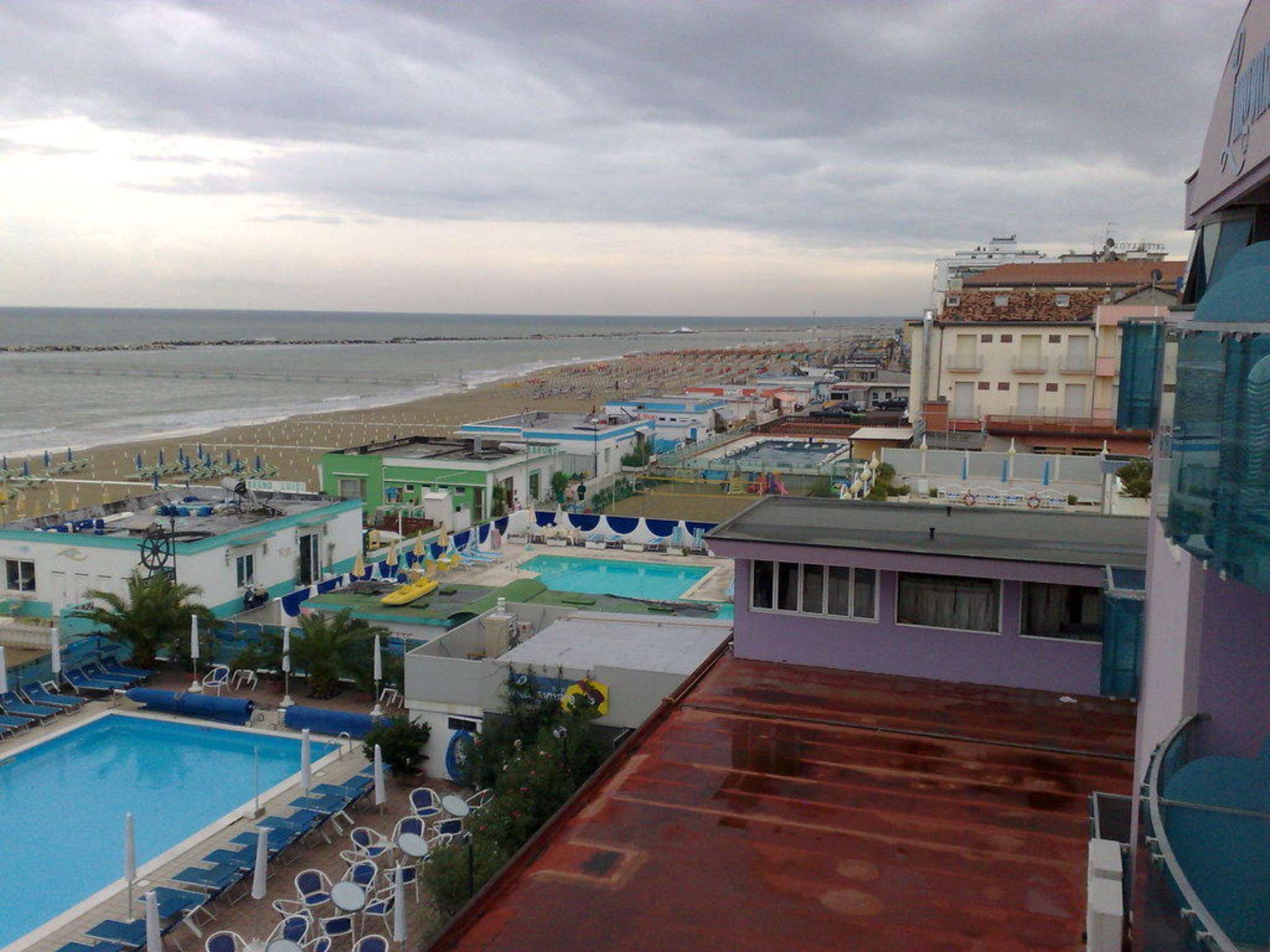 Blick vom Balkon nach rechts zum StrandEin Hotel neben dem nächsten, ein absolut sauberer Strand - den wünschte ich mir mal in Deutschland.