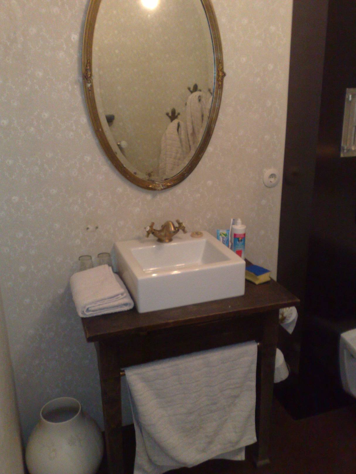 Bad, WaschbeckenKlein aber fein. Es lagen 3 kleine Fläschchen Körperlotion und Waschgel für Körper und Haare bereit. Seife war auch vorhanden.
