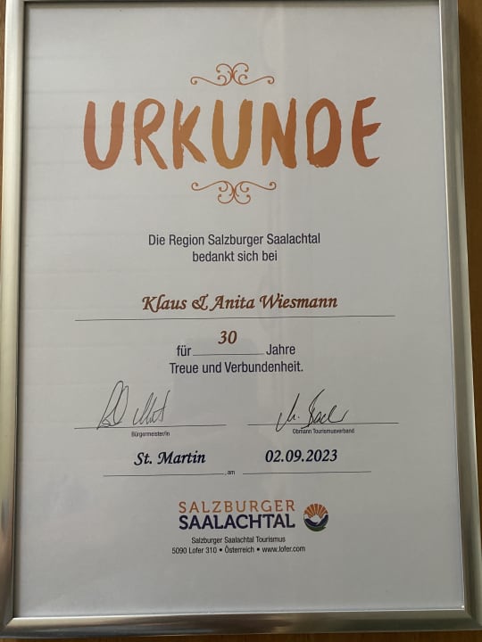 Urkunde für 30 Jahre Madlgut