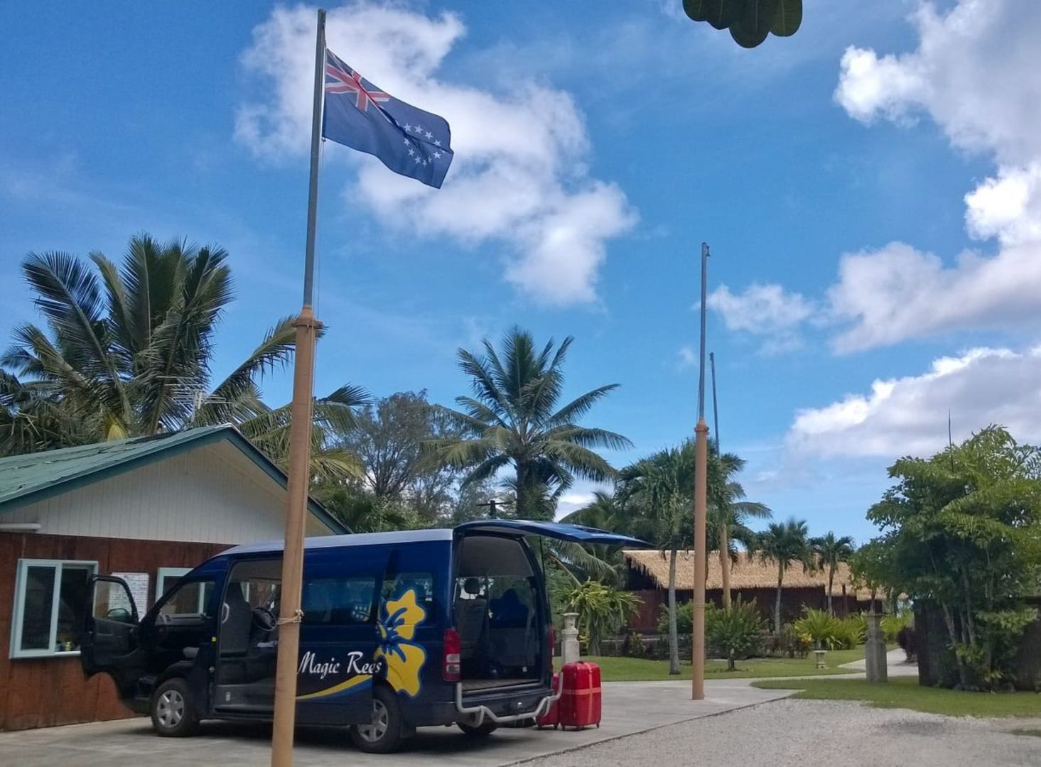 Links das Gebäude mit dem Office, im Hintergrund einige Bungalows
