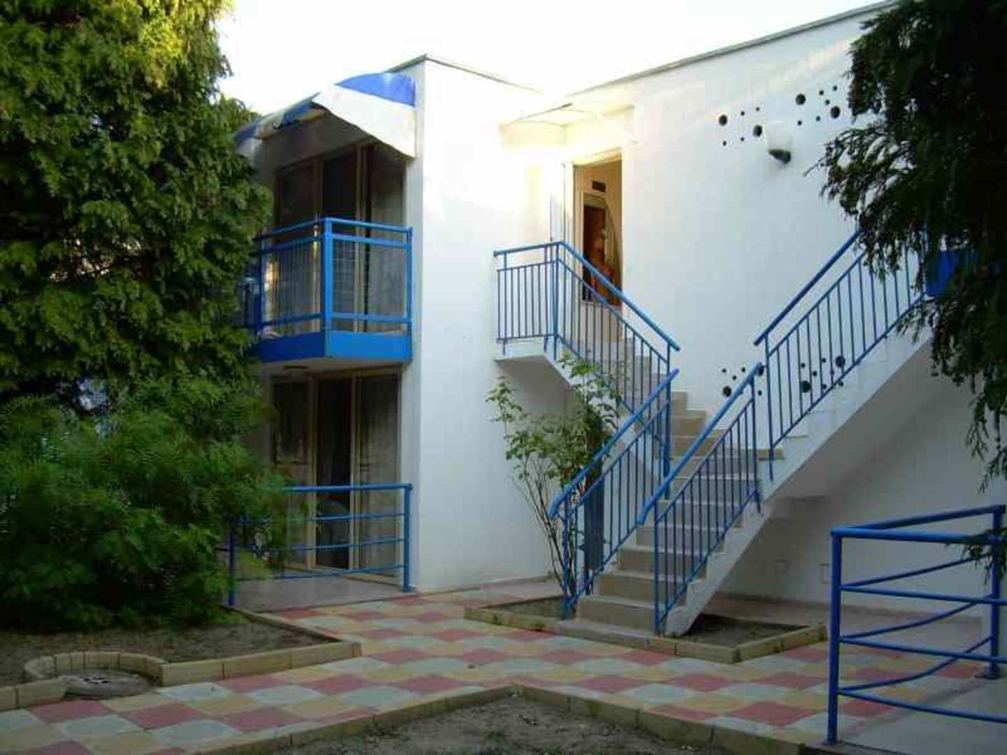 Auf den Balkon oben mit dem blauen Geländer war nachte der "indisponierte" Russe geklettert und hat mich, nachdem er die Schiebetür aufgerissen hat, "geweckt".