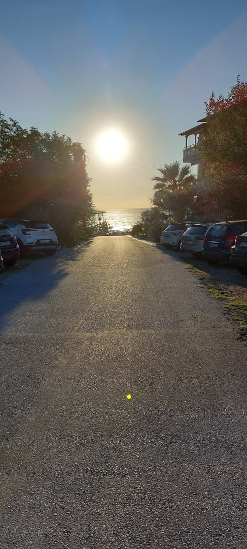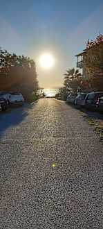 Sonne ist aufgegangen über Straße vorm Maistrali