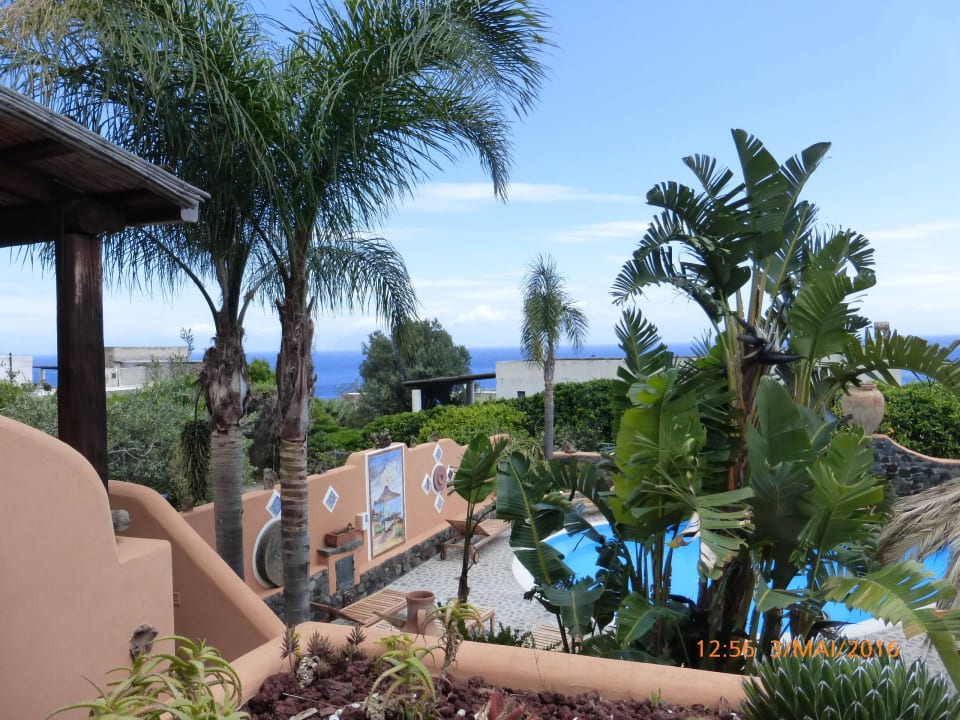 Schöner Ausblick auf Garten, Pool und Meer