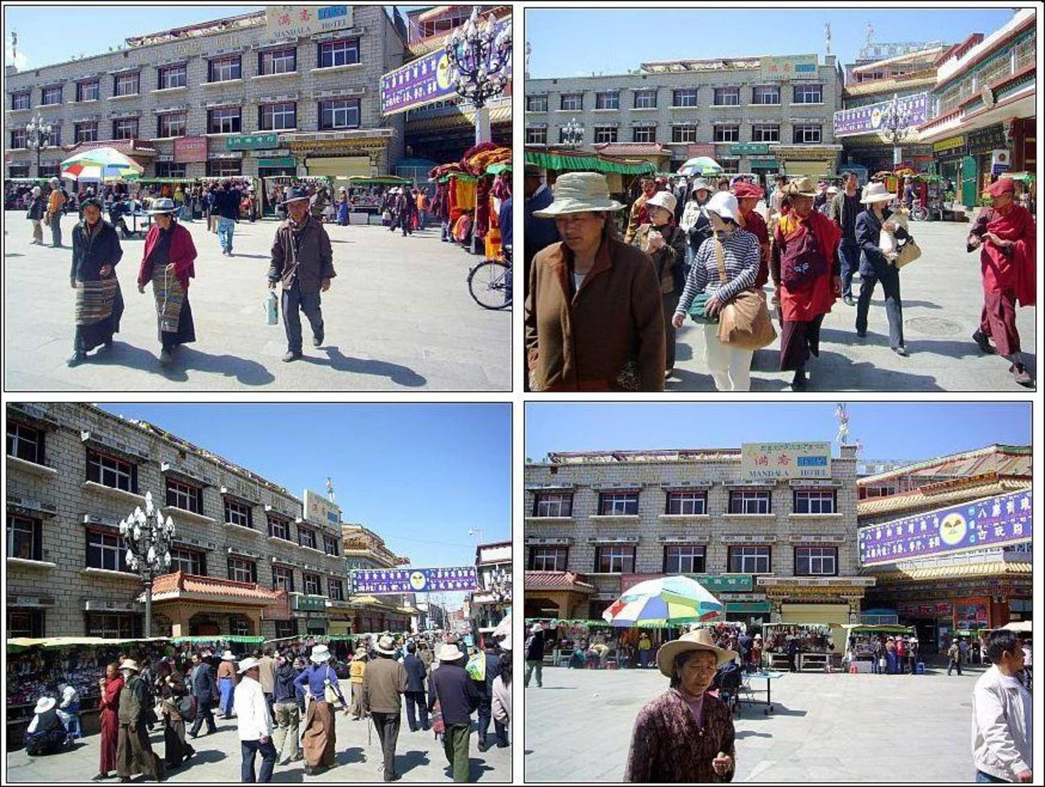 Vor diesem Hotel gibt es ständig sehr viele Menschen. Es sind Pilger, Händler und Touristen. Es gibt dort keine Autos und das Hotel befindet sich in Toplage von Lhasa.