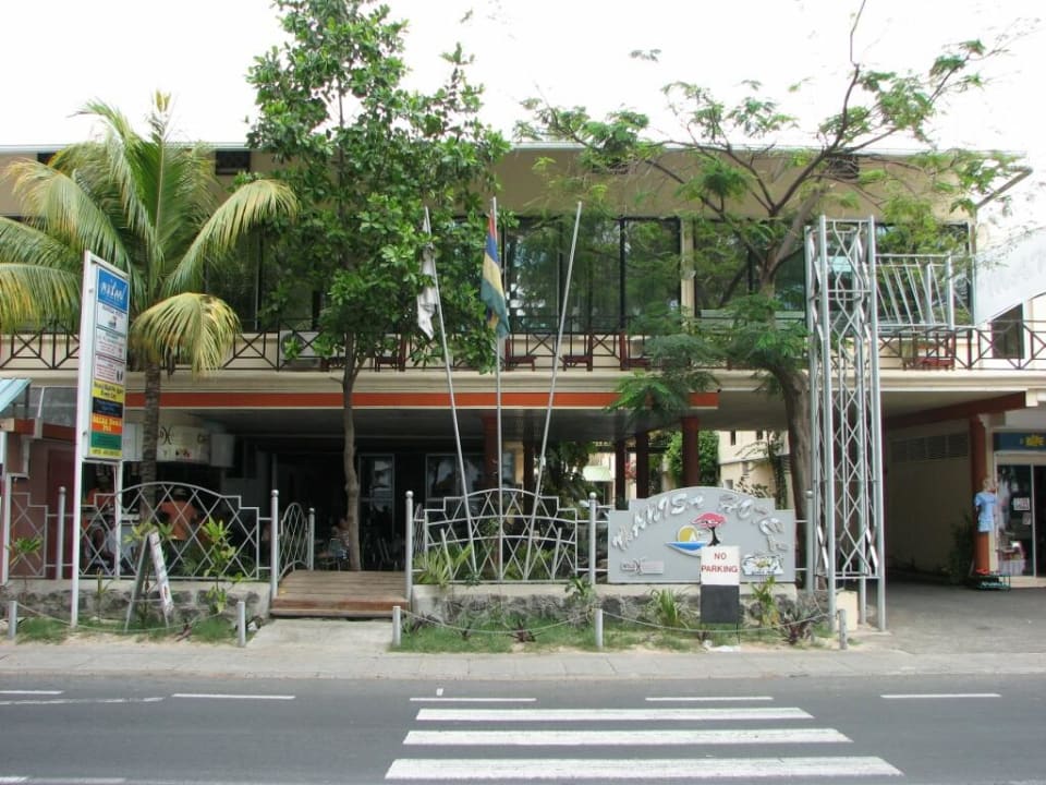 Man sieht den Eingang des Hotels an der Hauptstraße.