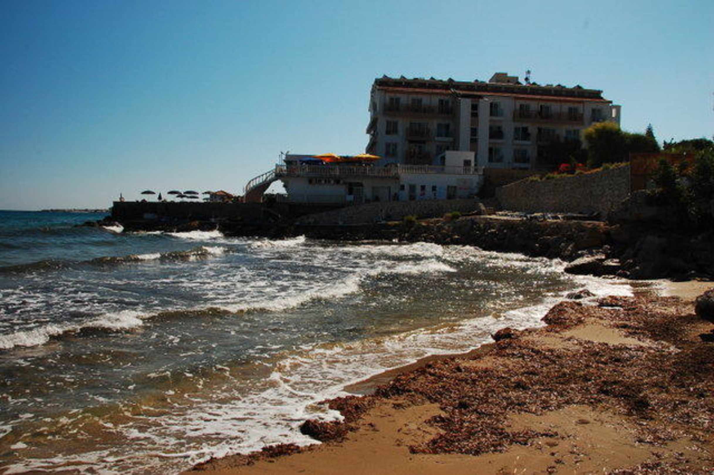 Tuż przy hotelu znajduje się mała i zaniedbana, piaszczysta plaża