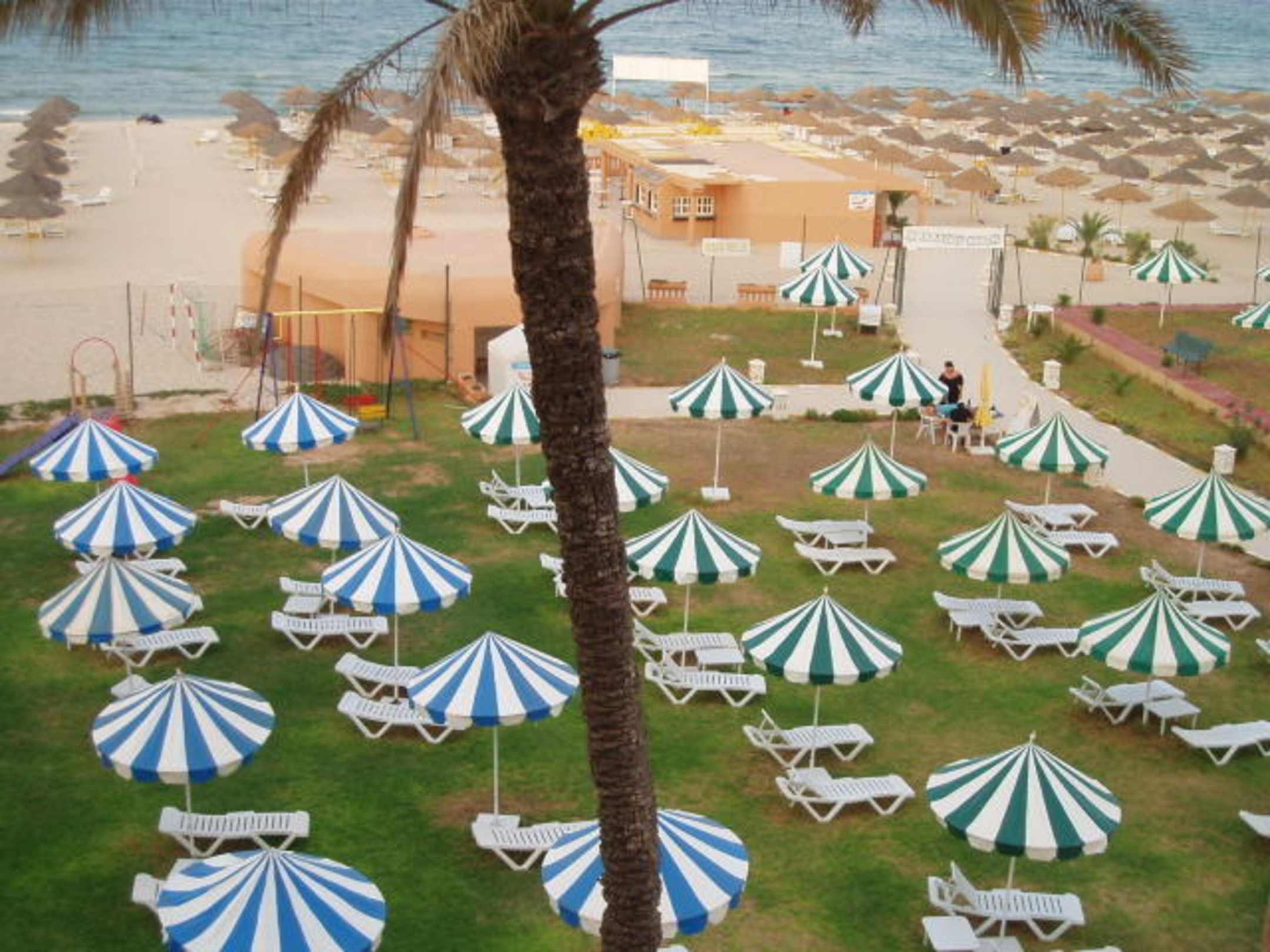 Hier nochmal die Liegewiese. Rechts der Weg führt zum hoteleigenen Strand.