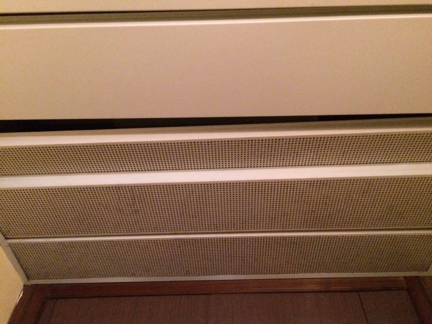 Lüftungsgitter an der Zimmerdecke geöffnet, warme Luft strömte den ganzen Tag heraus damit die Zimmer schöne 35 Grad hatten, keine Möglichkeit im Zimmer die warme Luft abzustellen