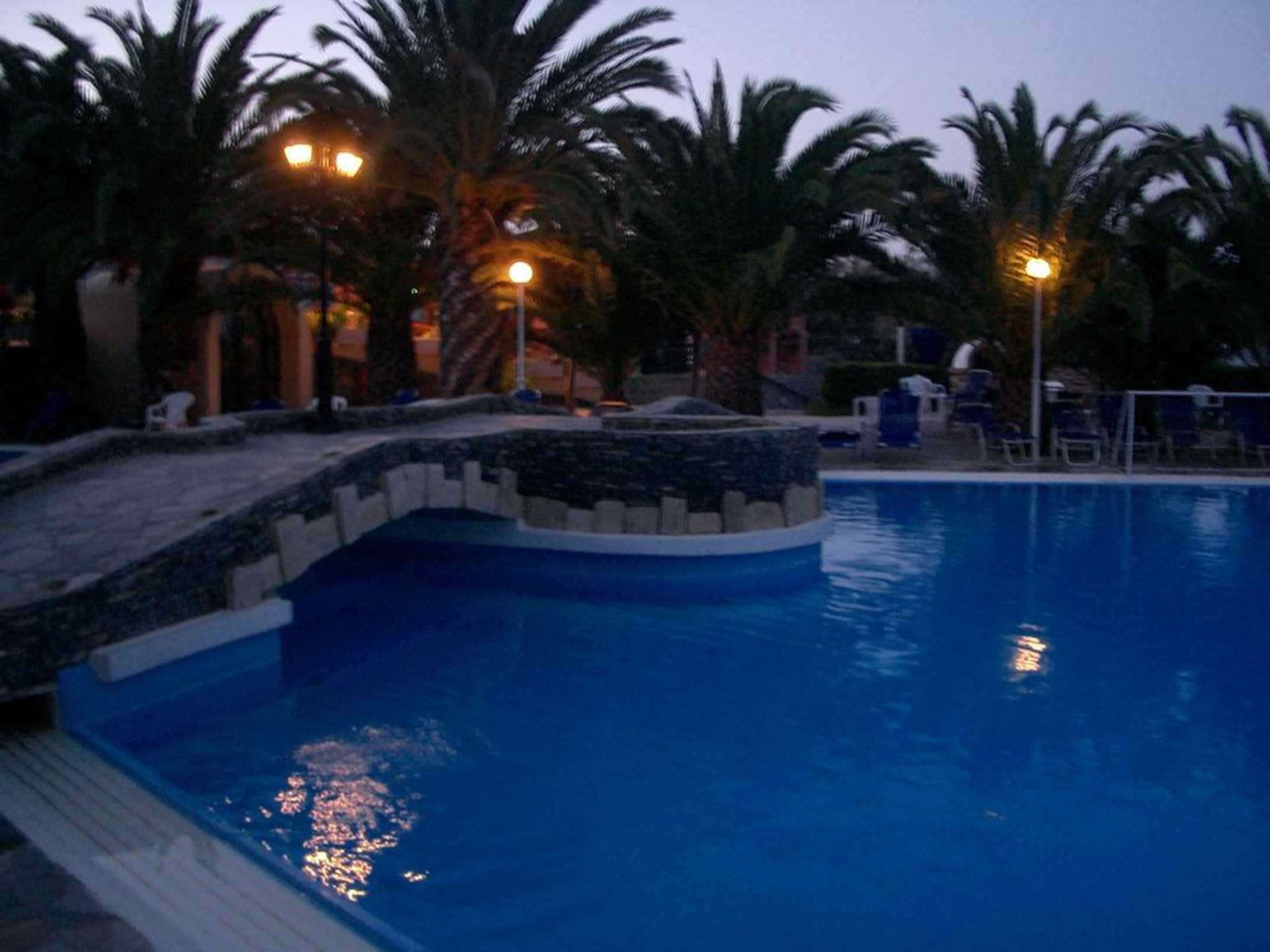 Brücke über dem Pool bei Nacht