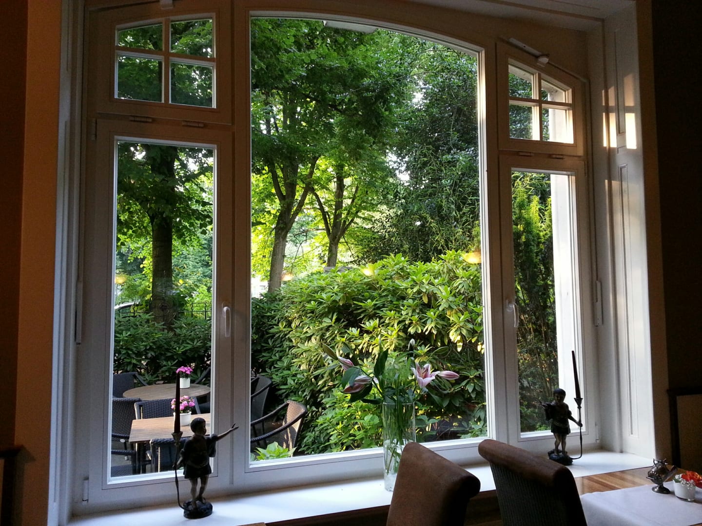 Blick aus dem Frühstückszimmer in den schönen Gartenbereich