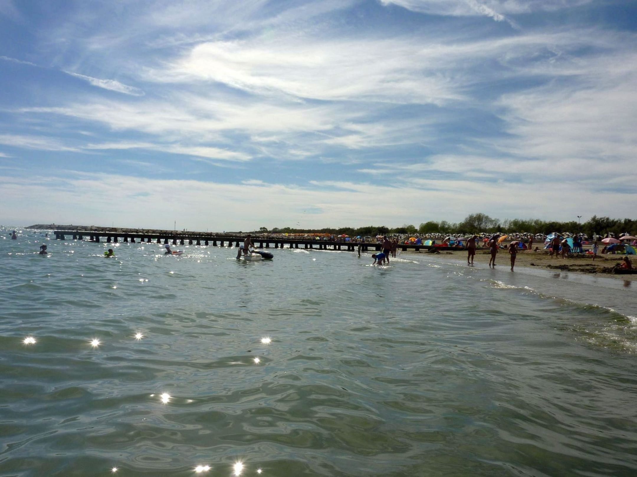 StrandDie hoteleigenen, gelben Strandliegen sieht man hier nicht, da sich diese im hinteren, privaten Strandabschnitt befinden. Der Strand direkt am Meer ist öffentlich. Hier liegen viele Urlauber aus den umliegenden Ferienanlagen auf ihren Handtüchern.