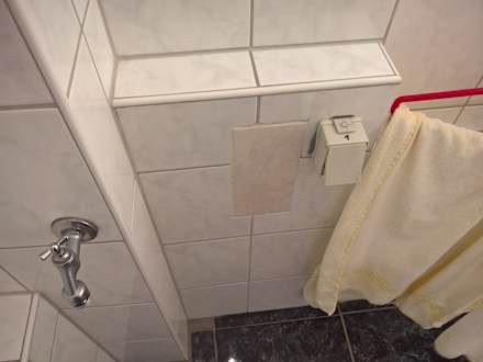 Die Fliesen im Bad und eine Steckdose
