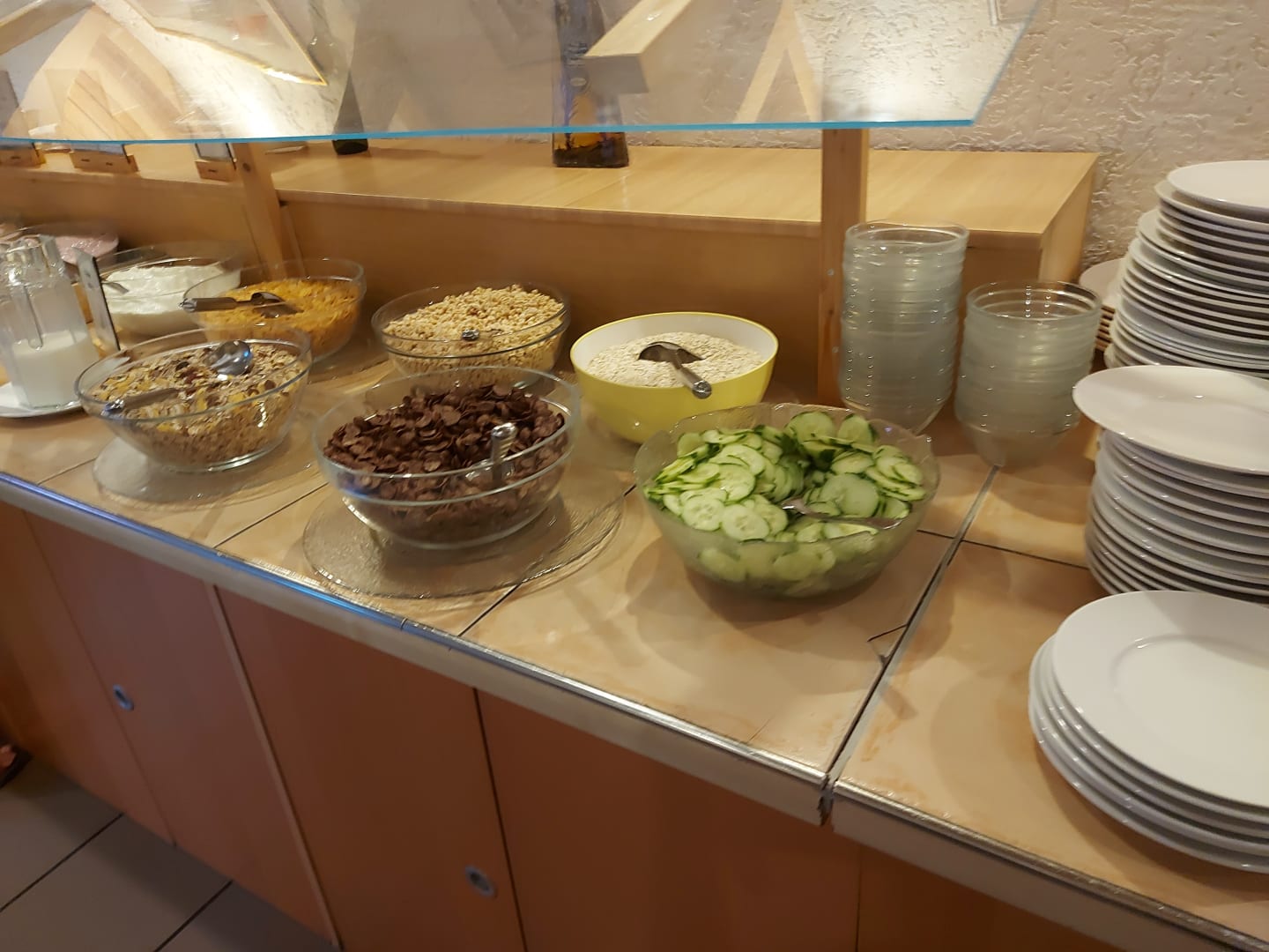 Müsli in großen Schüsseln, nicht gerade hygienisch