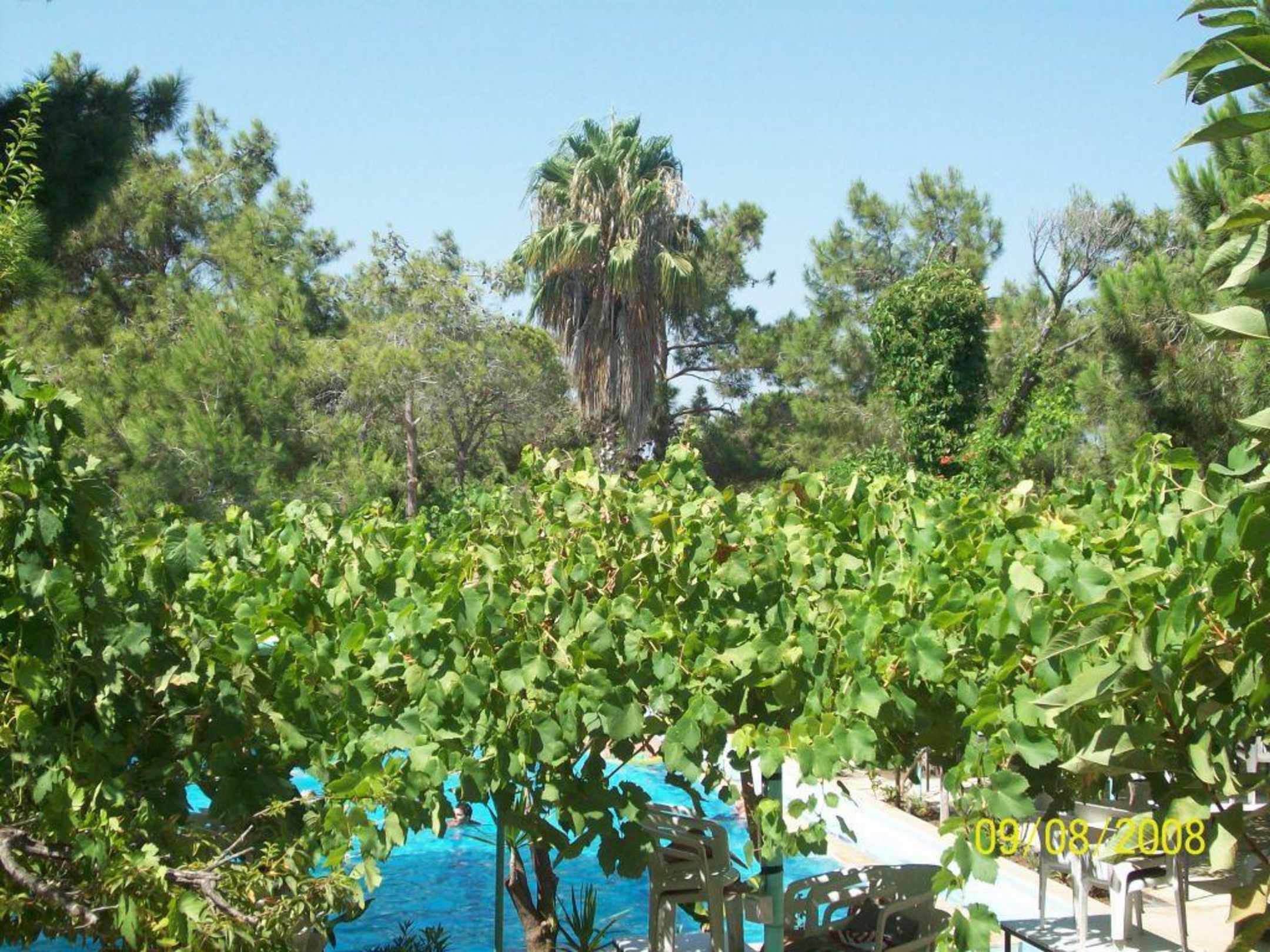 Der Pool und der Wein von der Bar aus fotografiert