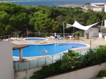 Blick vom Balkon auf Pool des TahitiDer Pool des Nachbarhotels Tahiti kann von Gästen des Maria kostenlos genutzt werden.