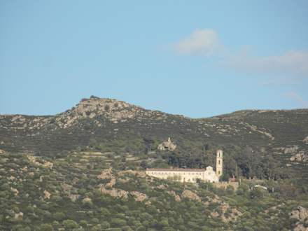 Kloster in den Bergen von der Anlage gesehen