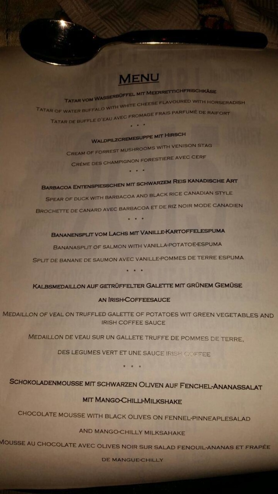 Menukarte Silvesterabend