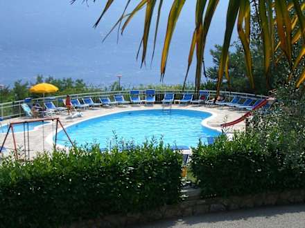 Blick vom Hotel auf Pool