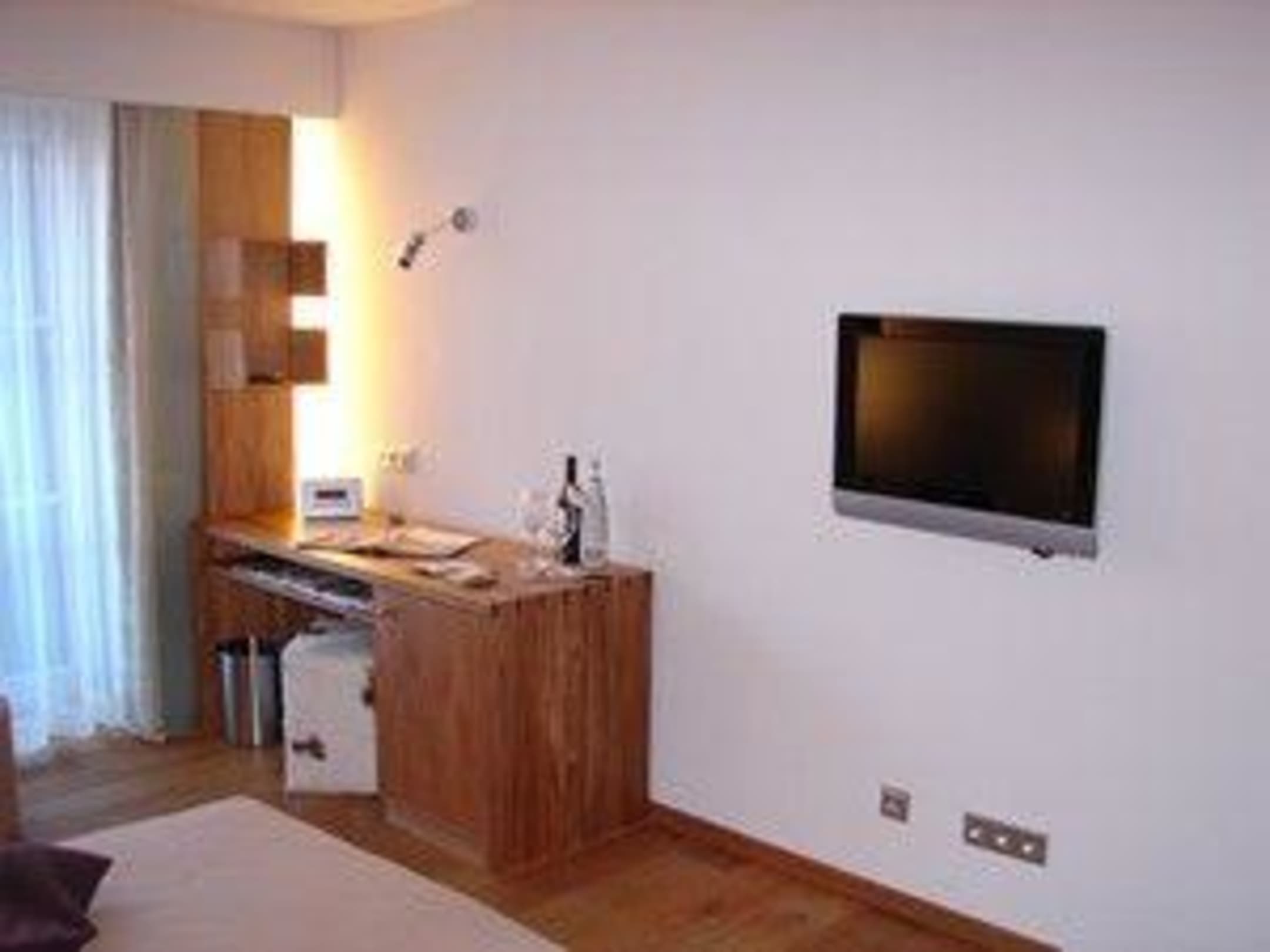 Zimmer mit LCD-TV, Schreibtisch mit CD-Design-Radio