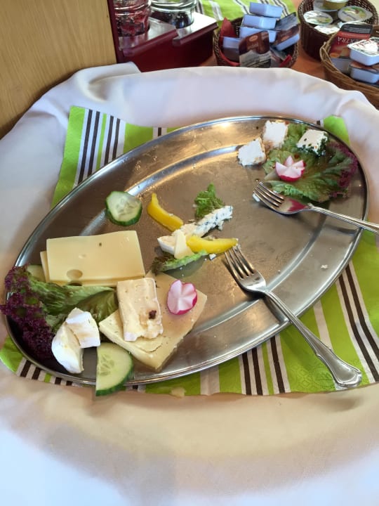 Käseplatte bei Ankunft zum Frühstück