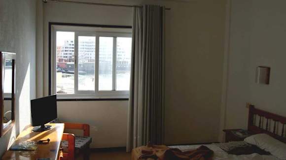 Meerblick aus Zimmer 217Zimmerfenster (217), das nur beim Herausbeugen mit entsprechender Kopf- Körperdrehung einen Blick zum offenen Meer ermöglicht.