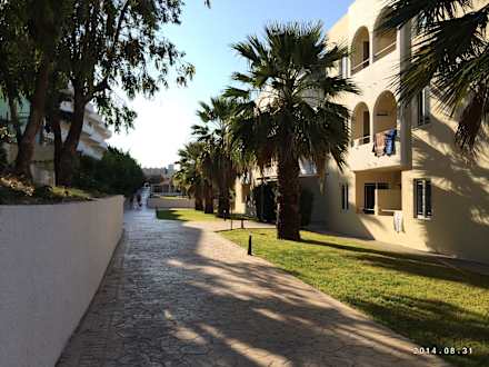 In der Hotelanlage (Weg vom Strand kommend)Links unser Wohngebäude, rechts zwei weitere Wohngebäude