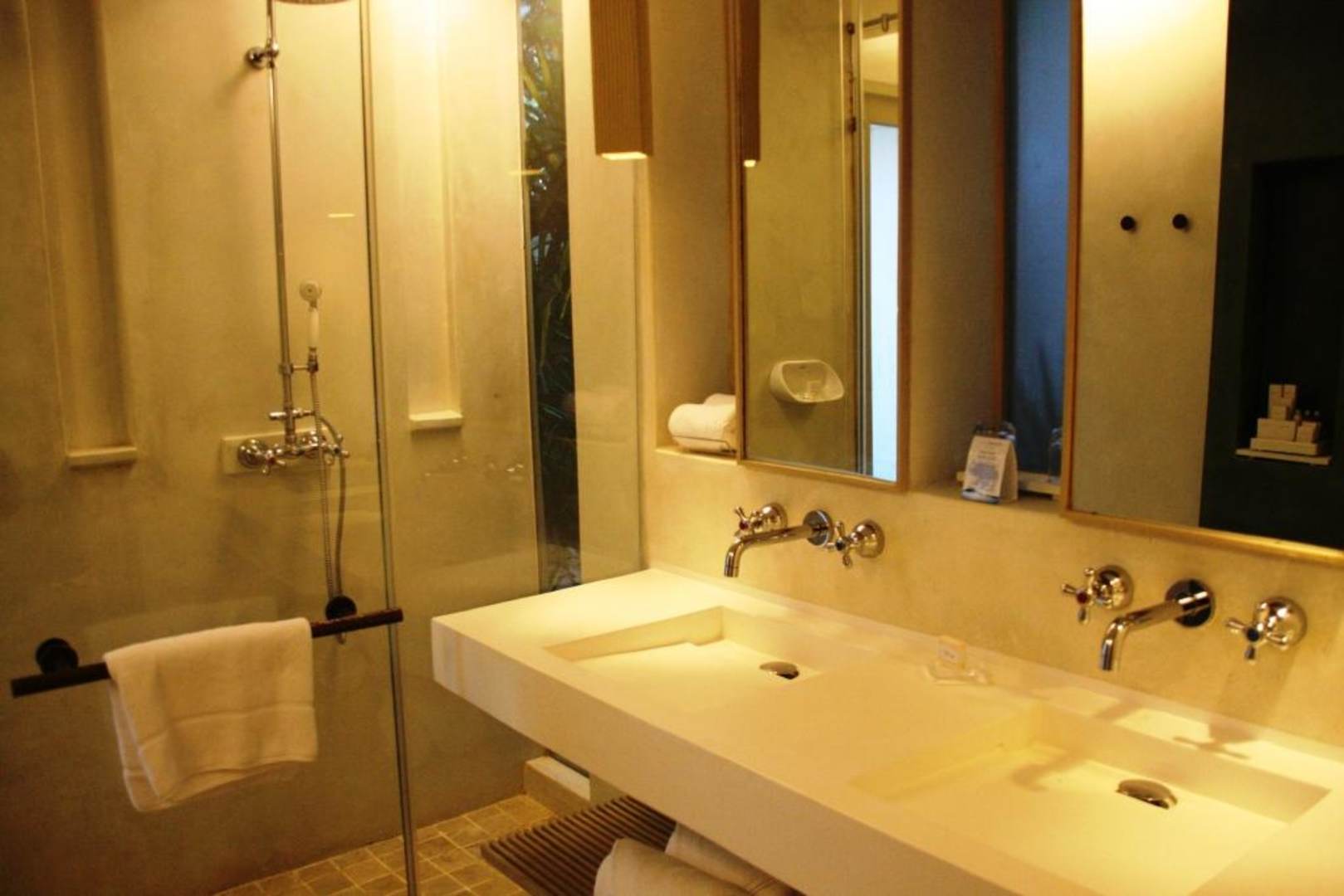 Doppelwaschbecken und Dusche
