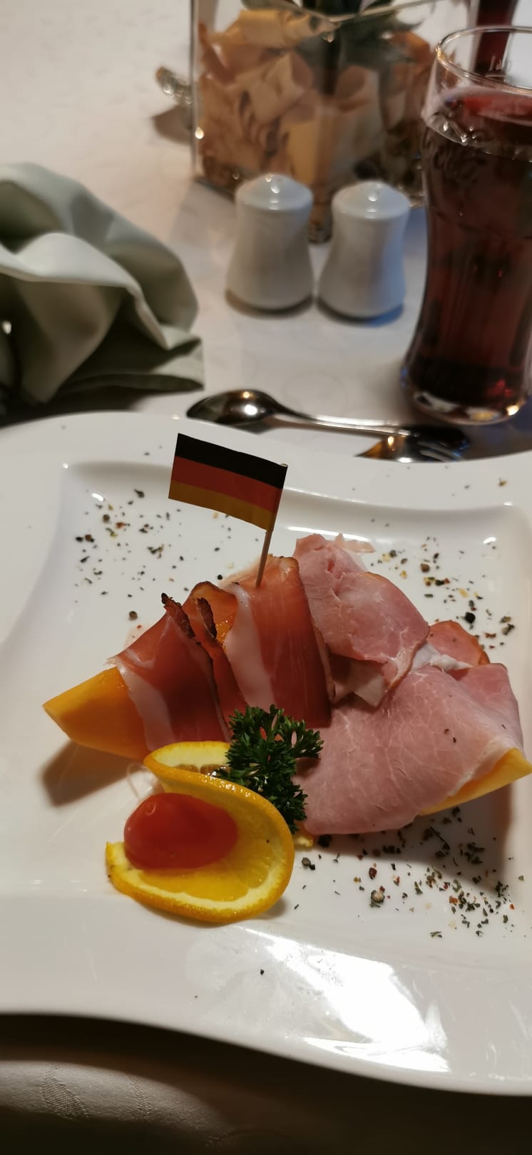Melone mit zweierlei Schinken