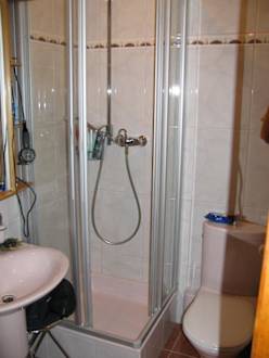Blick auf die kleine Dusche im Zimmer 18