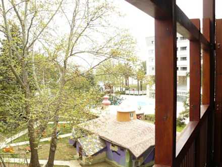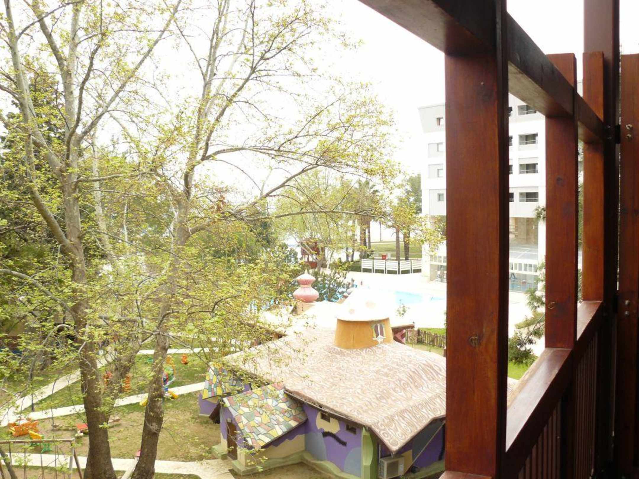 Blick auf Kinderparadies und Pool