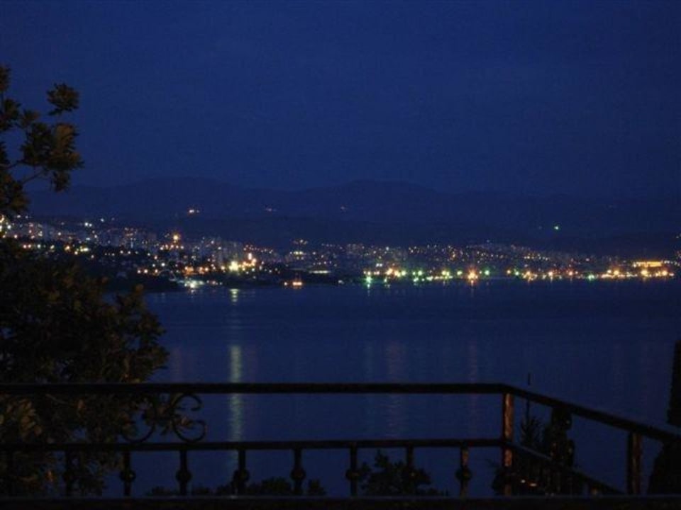 Abendlicher Balkon-Blick vom Zimmer auf die Lichter von Rijeka