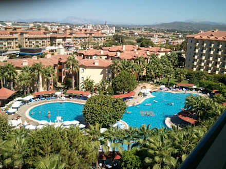 Blick auf die Poolanlage vom Queen