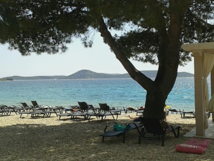 Liege kostet 35 Kuna, Schirm 20 Kuna, Liege für Gäste des Olympia Sky nur 20 Kuna.
