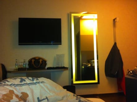 Flatscreen, Spiegel und Garderobe