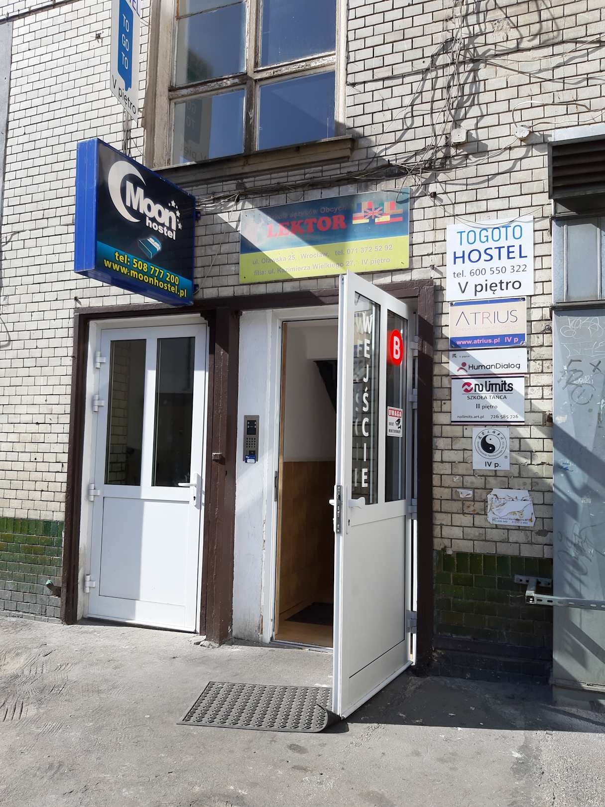 Eingang zum Gebäude, in dem das Hostel ist.