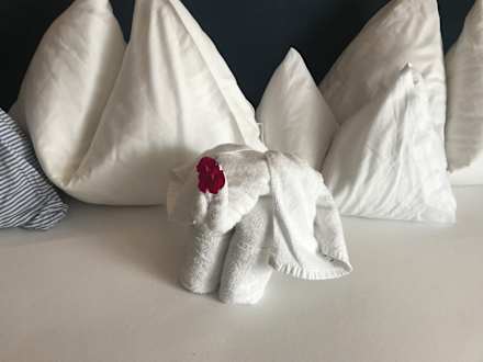 Kleiner Elefant auf dem Bett