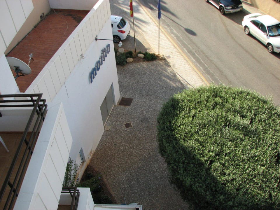Widok z balkonu na wejście do hotelu