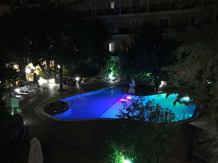 der beleuchtete pool bei abend