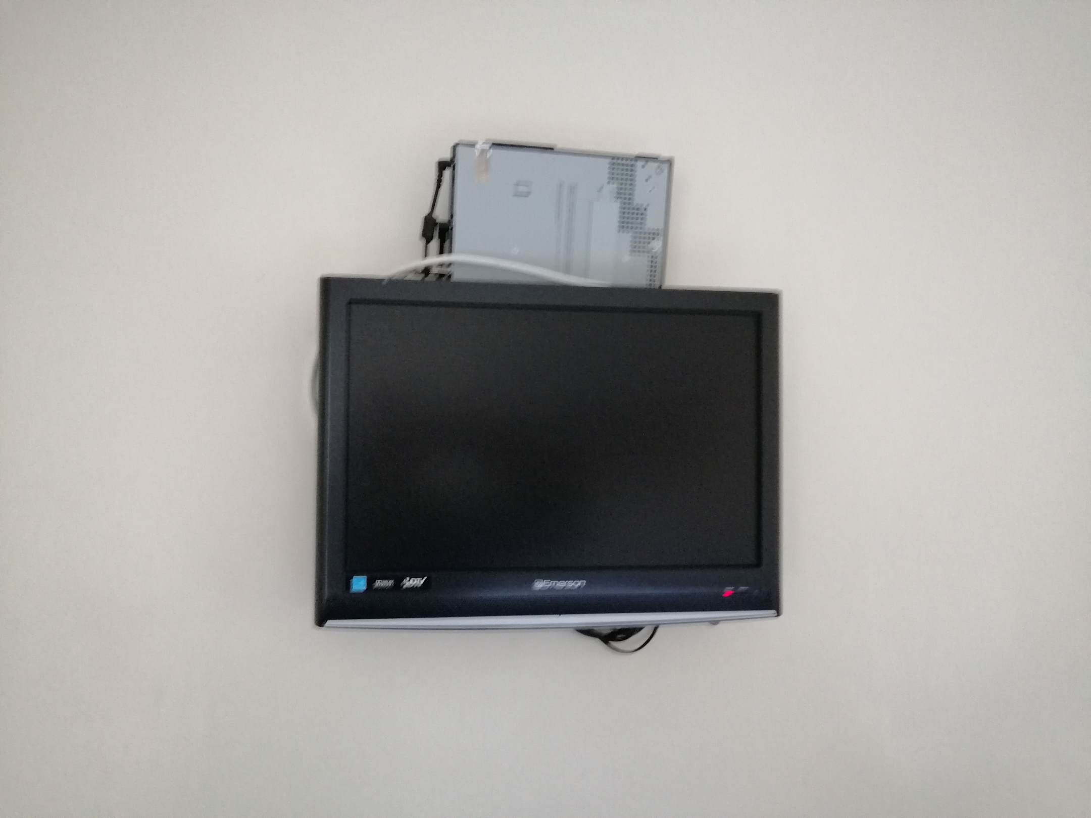 Kleiner Fernseher und einfach dahinter geklemmt der benötigte Receiver