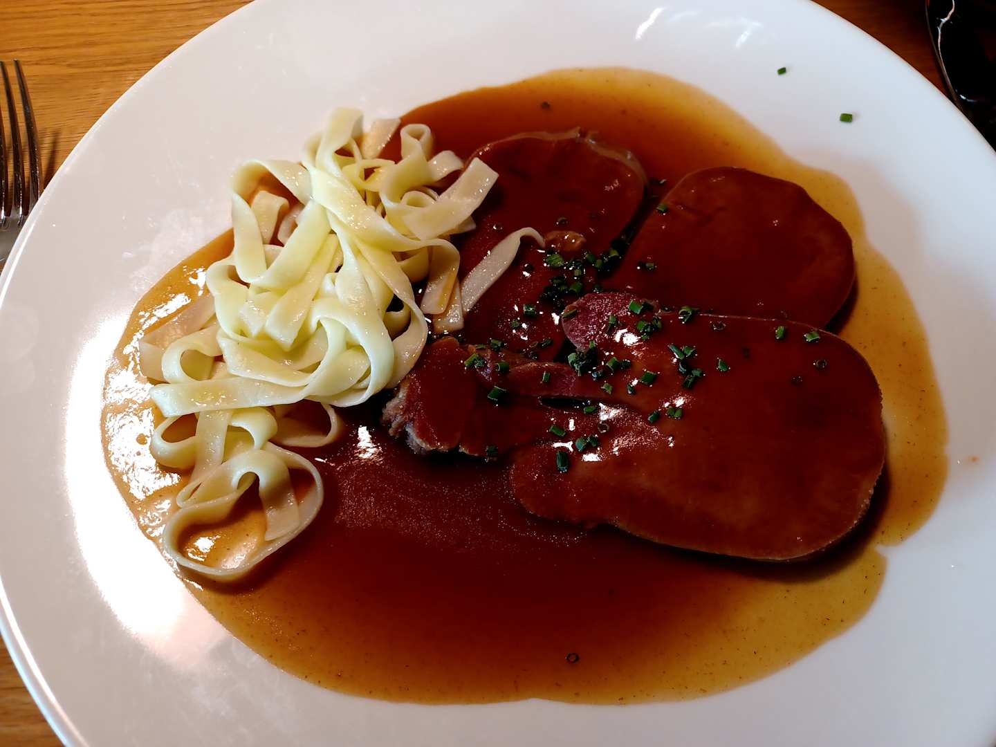 Rinderzunge, Madeirasauce und Bandnudeln
