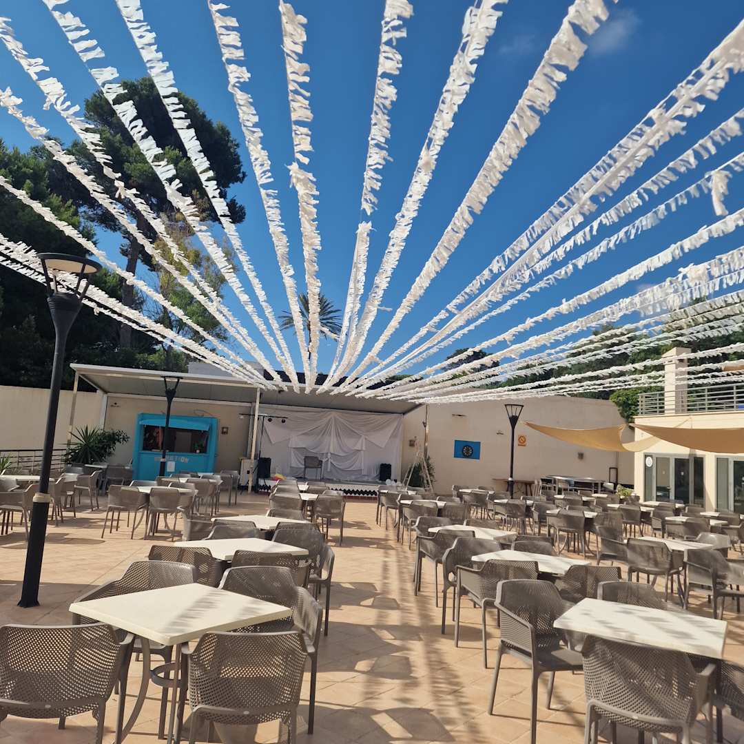 Terrasse geschmückt für Party in Weiss.