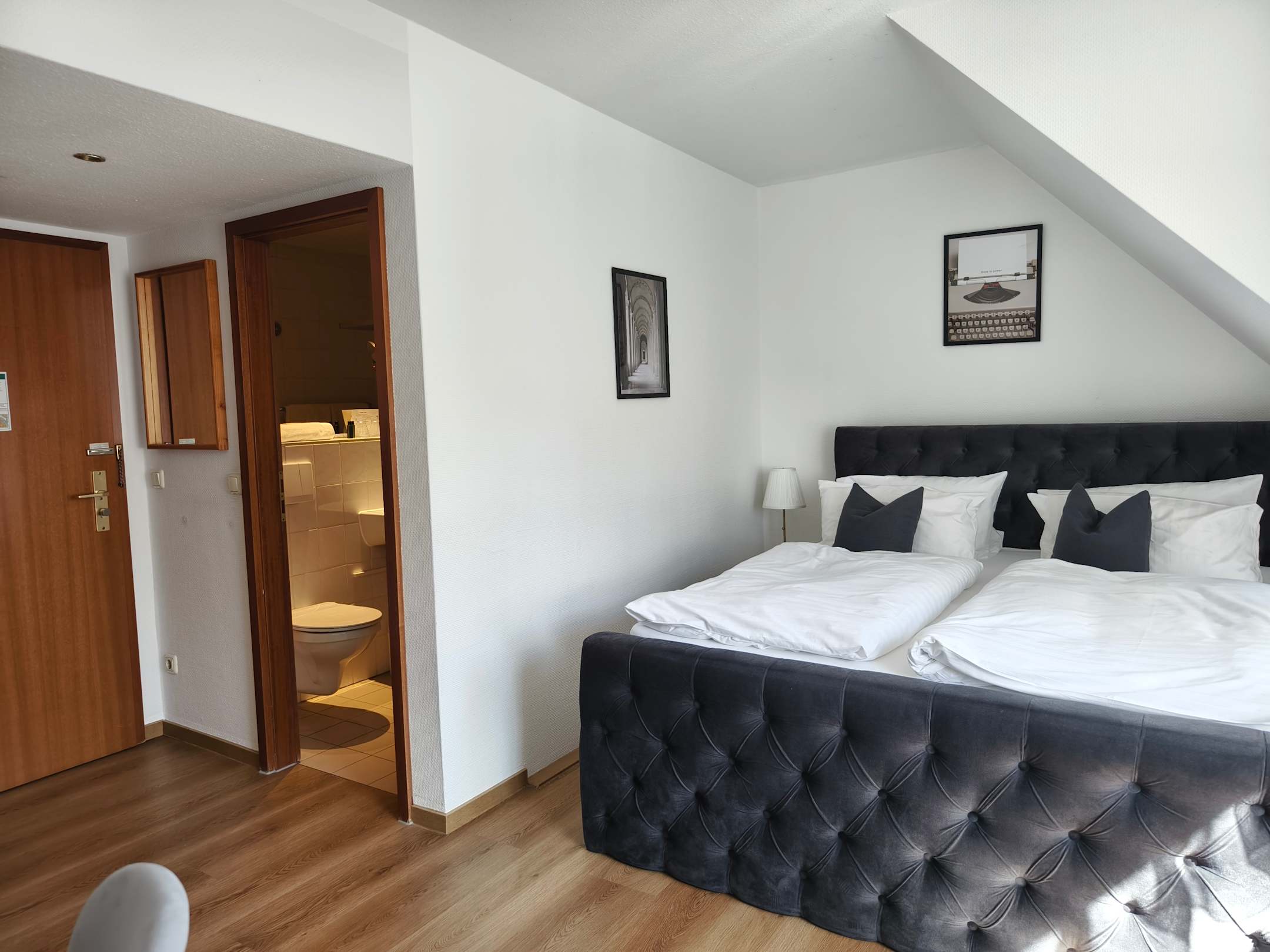 Zimmer 28 zum Hinterhof aber wirklich leise wirds selten... ein zweiter Stuhl hat gefehlt wurde auf Wunsch später reingestellt...leerer Minikühlschrank richtiges Toilettenpapier fehlt, dafür "Blättchen" Spender...