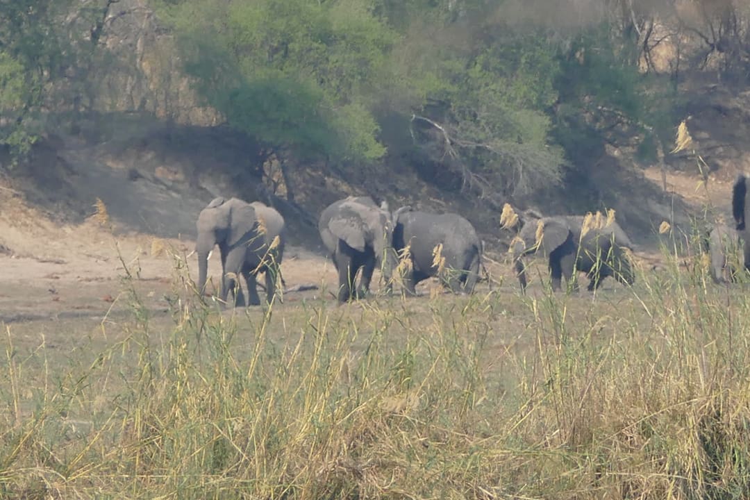 Blick auf Tiere auf der gegenüberliegenden Flußseite von der Terrasse des Hotels aus.