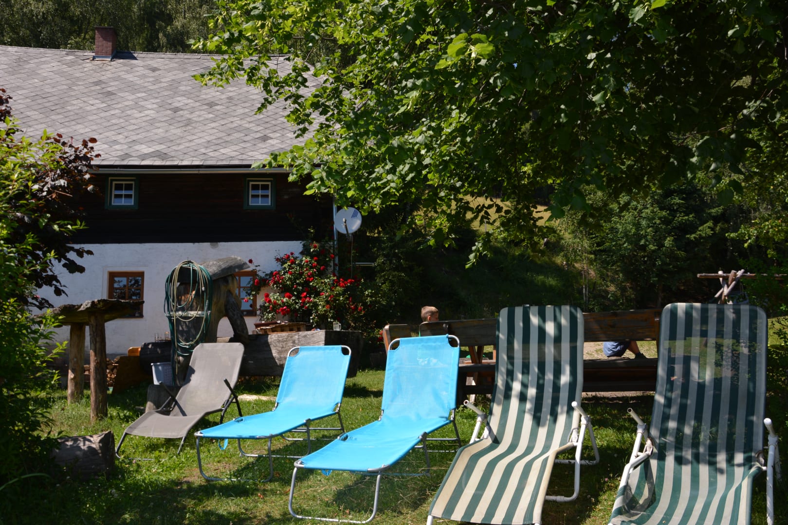 viele Sonnenliegen in Ruhe und Natur Entspannung pur