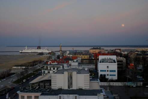 Zimmerausblick 9.Etage in Dämmerung