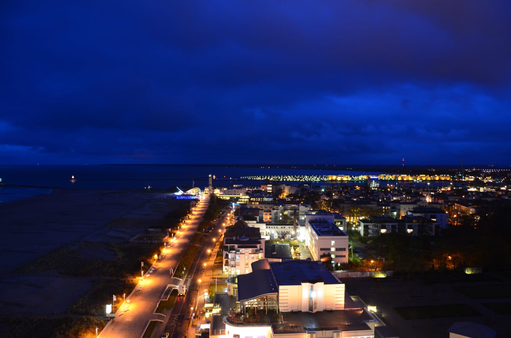 wunderschöner Ausblick aus dem 17. Stock am Abend aus dem Neptun Hotel in Warnemünde