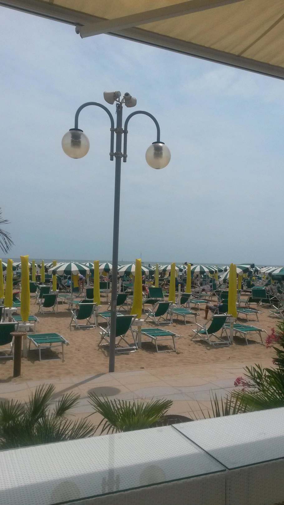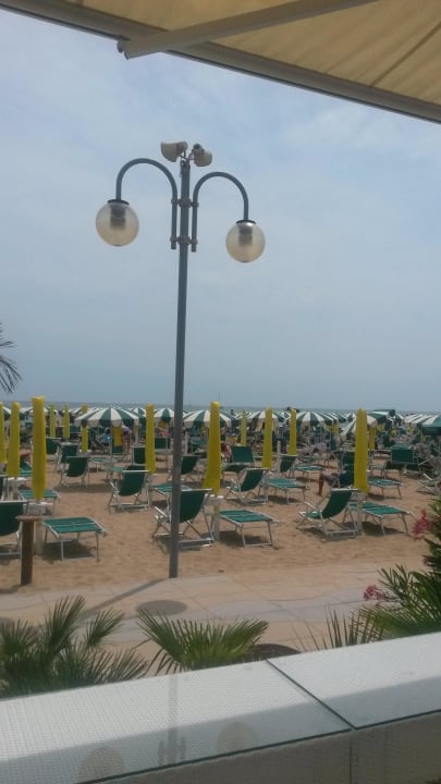 Mit Blick von der Kaffeeterrasse auf den Strand