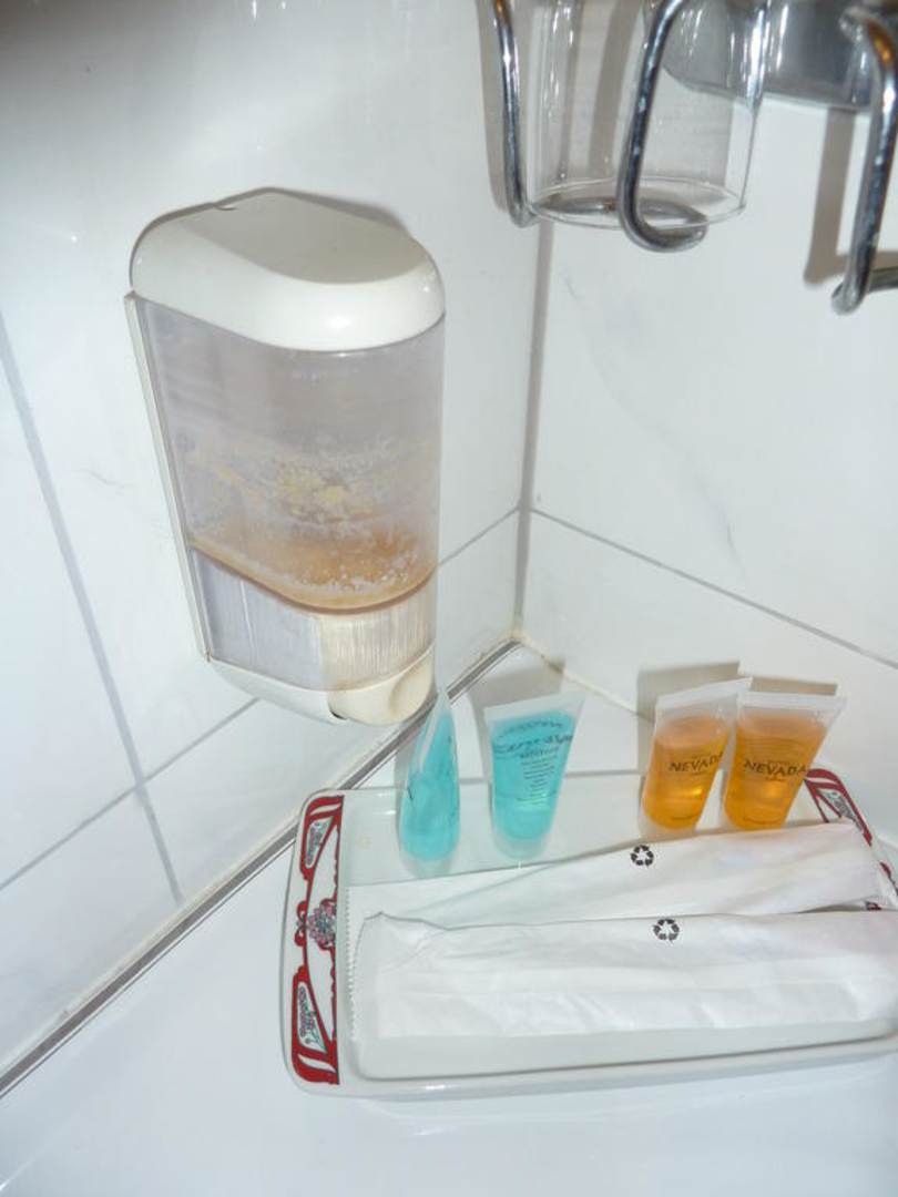 Verklebter und verdreckter Seifenspender