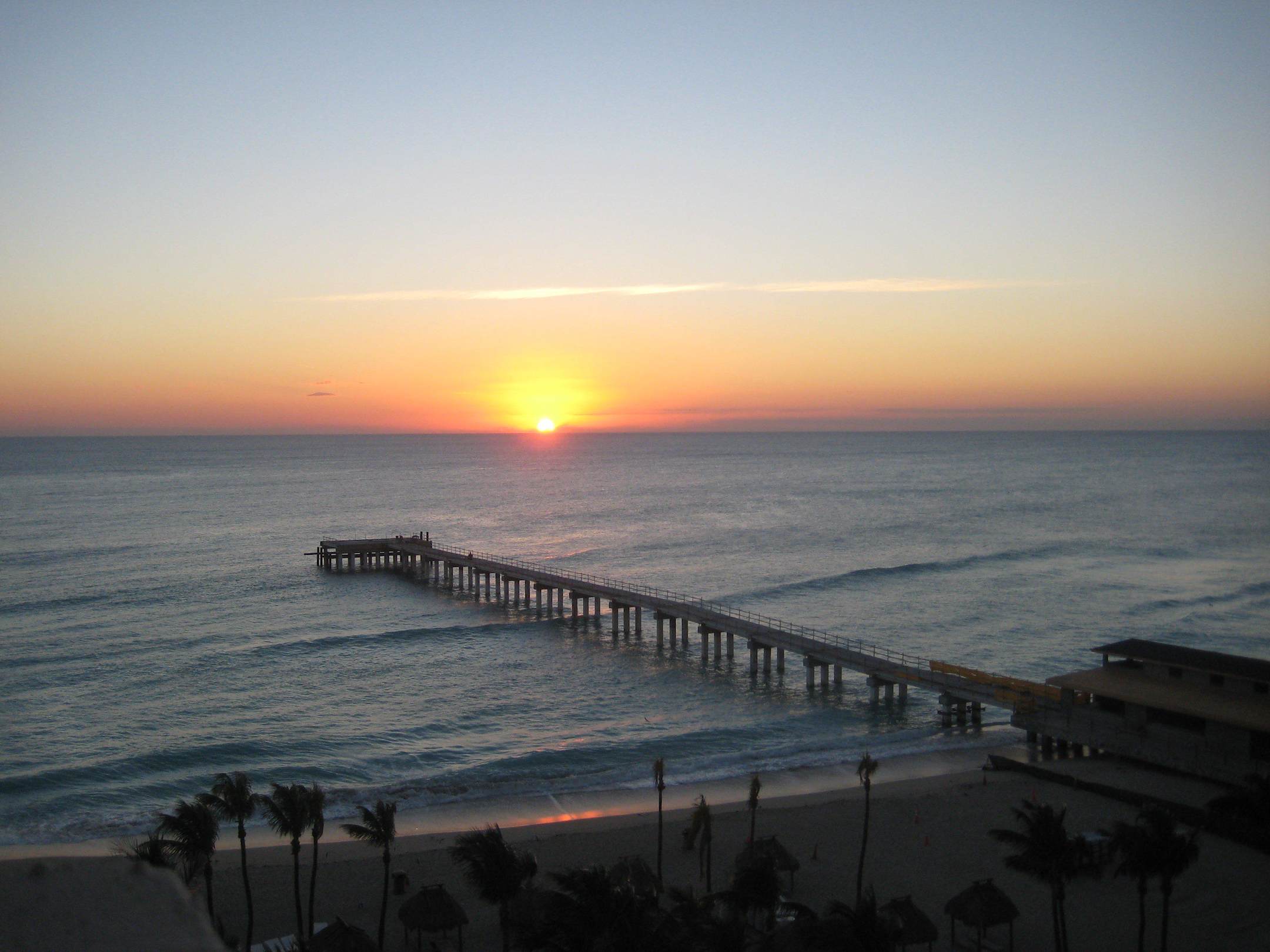 Blick zum Strand vom 10. Stock bei Sonnenaufgang.